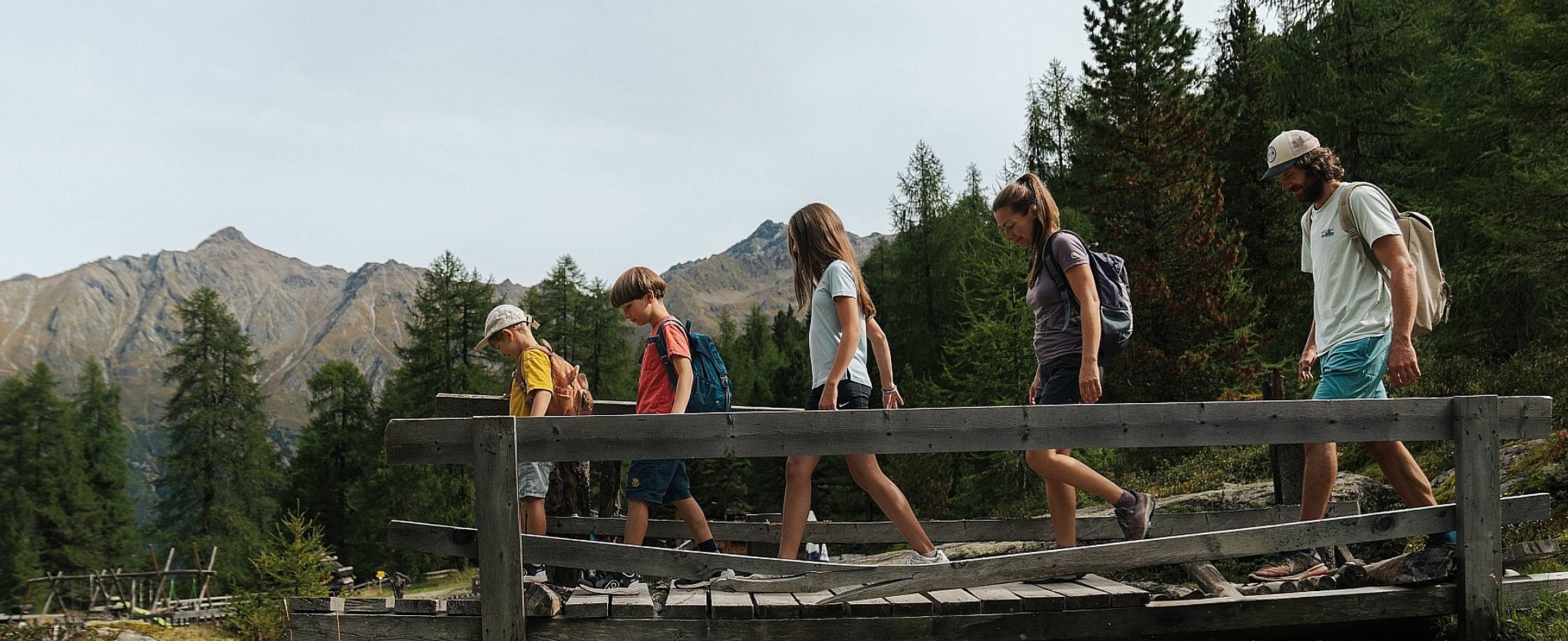 The needs of our younger guests are close to our hearts. Games, fun and action await young and old during the summer months. In addition to numerous activities in the valley, the mountain lifts also offer a child-friendly infrastructure for your summer holiday with the family. Pitztal offers not only walking trails in the valley (some of which are also suitable for prams), but also easy trails on higher ground, which can be comfortably reached by lift. For example, the Hochzeiger mountain lift with the ZirbenPark, the Rifflsee mountain lift with the Rifflsee round walk.